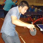 当晚20时40分许,政法系统干部双语培训班的学员就陆陆续续地来到比赛场地进行“赛前强化训练”,其实说到底,就是个别学员的乒乓球启蒙教育。因为以前几乎没怎么打过乒乓球,他们多多少少显得有些动作僵硬,球也总是以极为诡异的角度频频飞向球场的各个角落,不过好在有球技较好的学员毫无怨言的鼓励和指导,还有围观者一次次的把他们打飞的球捡回来。