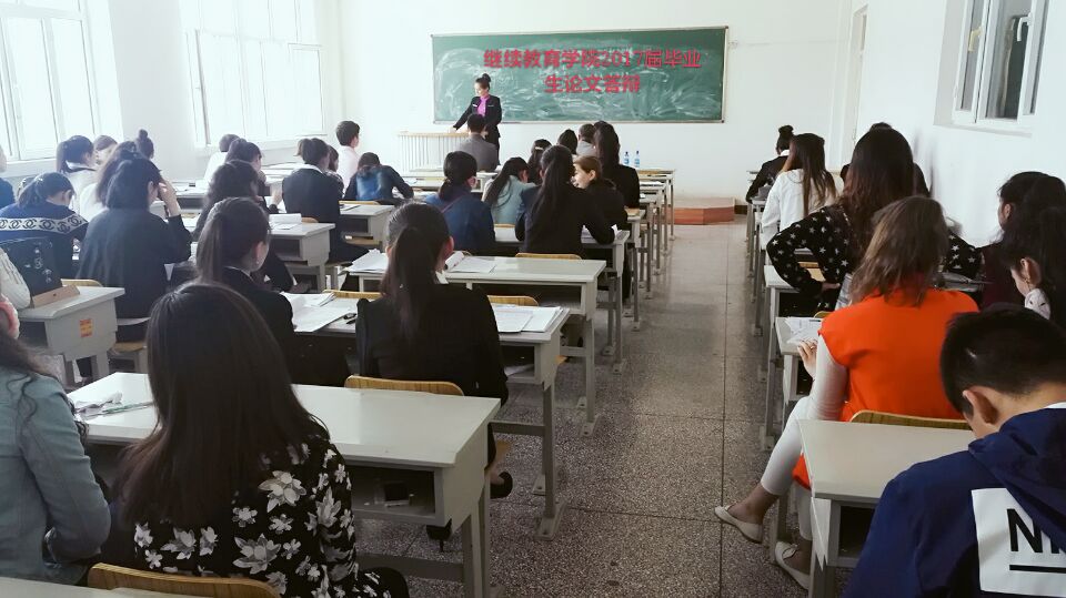 继续教育学院2017届函授专升本毕业论文答辩于2017年5月6-7号在2号教学楼进行。本次答辩按专业分为16个答辩组,有49位评委及16位记录员参与答辩工作。答辩学员428人,其中包括库车、阿瓦提、新和等教学点的学员。